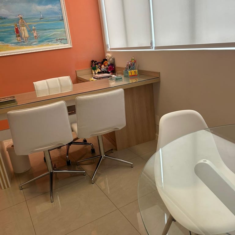 Aqui no consultório, preparamos todo o ambiente para receber a família de forma confortável e acolhedora.